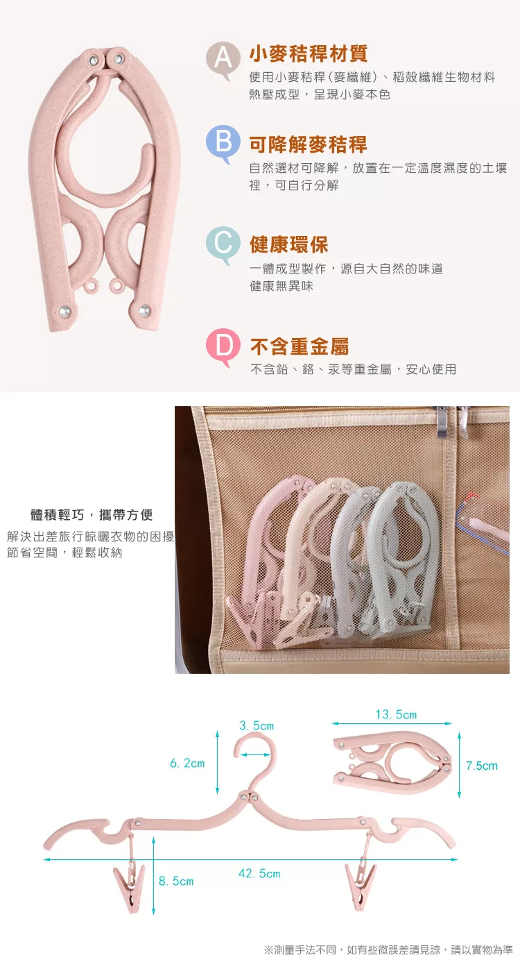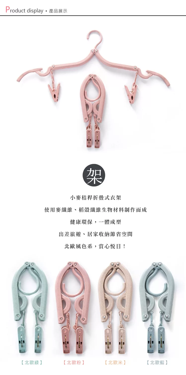 小麥秸稈便攜折疊式旅行掛夾衣架 (2入組)-北歐米 評價